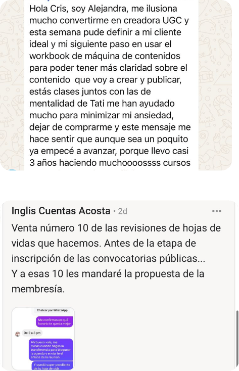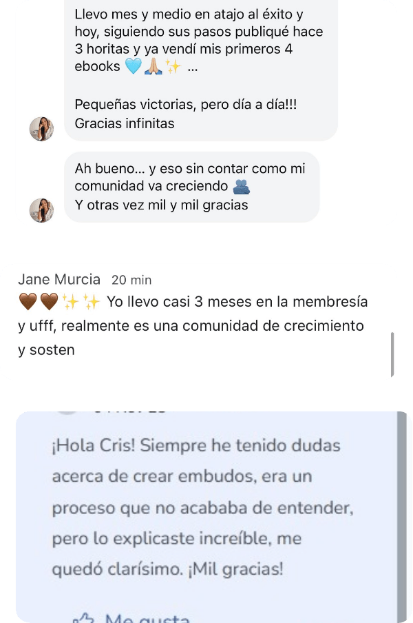 Una comunidad activa donde compartes resultados, haces networking y encuentras colaboradoras en el mismo camino.